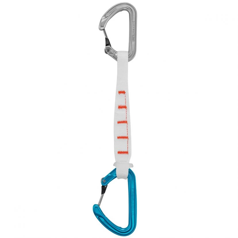 The carabiner is equipped with a technology called MonoFil Keylock, you will in fact have a carabiner with a single wire lever, without the hook where you can accidentally entangle the rope.