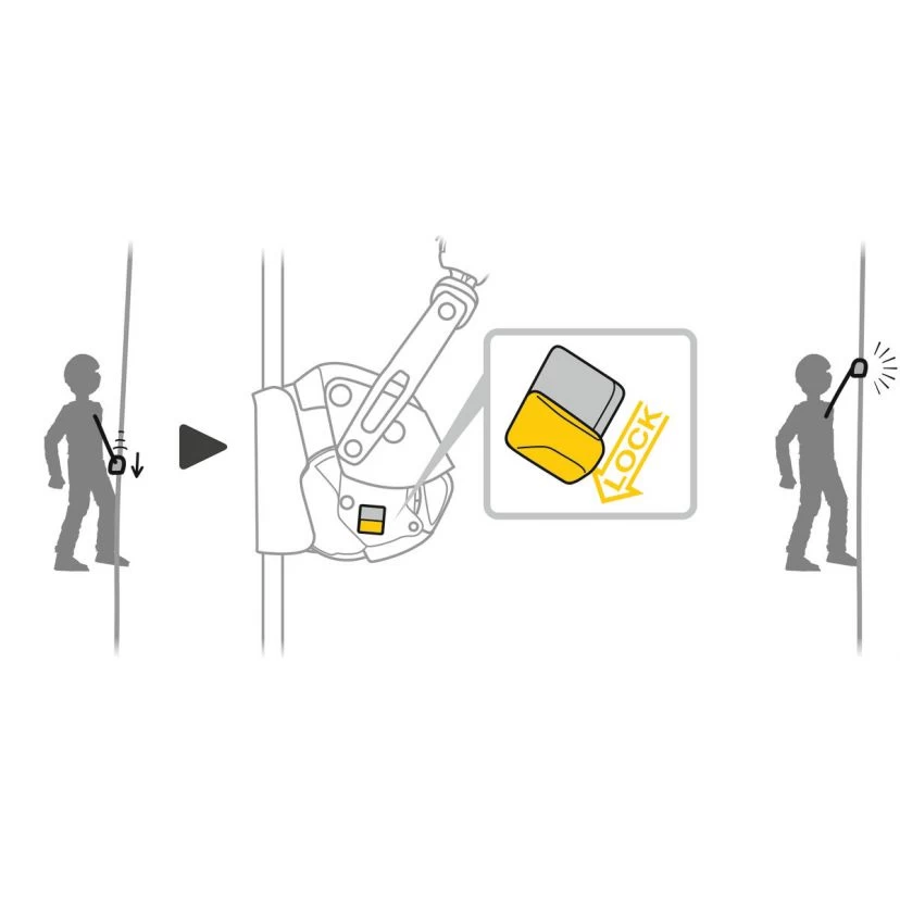 The mobile fall arrest for work at height Petzl Asap Lock is a device with integrated locking function. Asap Lock works with ropes between 10 and 13 mm in diameter and is designed to slide freely on the rope both upwards and downwards and lock in the event of a fall, slipping, impact or uncontrolled descent.