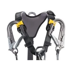 Equipped with six padded and adjustable attachment points, belt, leg loops and breastplate. The harness closes thanks to a carabiner with an automatic Triact-Lock locking ring. The straps have a system that allows you to fix the connectors of the fall arrest lanyards and keep them close at hand.