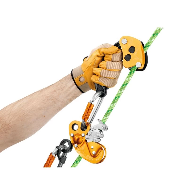 The additional brake for the mechanical Prusik ZigZag Petzl Chicane is suitable for working on plants and for progression on a single rope.