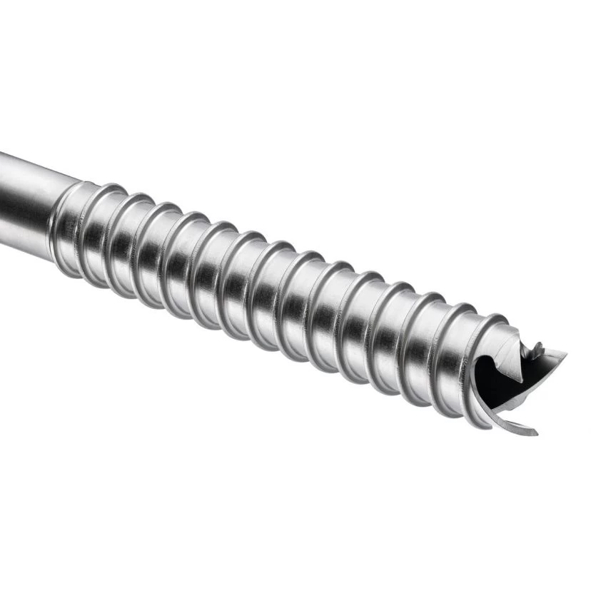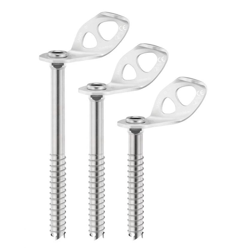 Petzl Laser climbing ice screw is light and performing, characterized by a three-tooth tip designed to facilitate insertion into the ice.