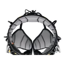 The harness is equipped with five attachment points: an attachment bridge, two opening attachment points, two movable side attachments. The side attachment points are movable to follow the orientation of the lanyard in the lateral movements while the attachment bridge is connected to two opening rings to allow it to adapt its length and install the accessories directly on the bridge.