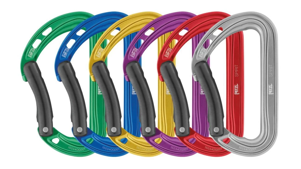 Known for being lightweight and versatile, the SPIRIT carabiner is the benchmark for sport climbing and working routes. The bent gate design optimizes clipping and unclipping the rope. The Keylock system prevents the carabiner from snagging when clipping and unclipping. Its standard size doesn’t compromise on weight; in fact, its excellent weight-to-performance ratio means you can take it with you on different types of terrain like single pitch, multi-pitch, alpine rock, or ice. The pack contains six SPIRIT bent gate carabiners of different colors (gray, violet, green, red, yellow, and blue), to match different cam and nut sizes.![]()