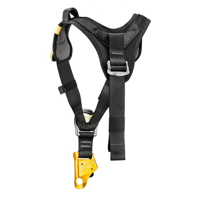 Petzl Top Croll L chest harness for work at height is provided with Croll L ventral blocker and developed to transform Astro Sit Fast, Avao Sit, Avao Sit Fast, Falcon, Falcon Ascent and Sequoia Srt harnesses into fall arrest harnesses for difficult-to-access areas.